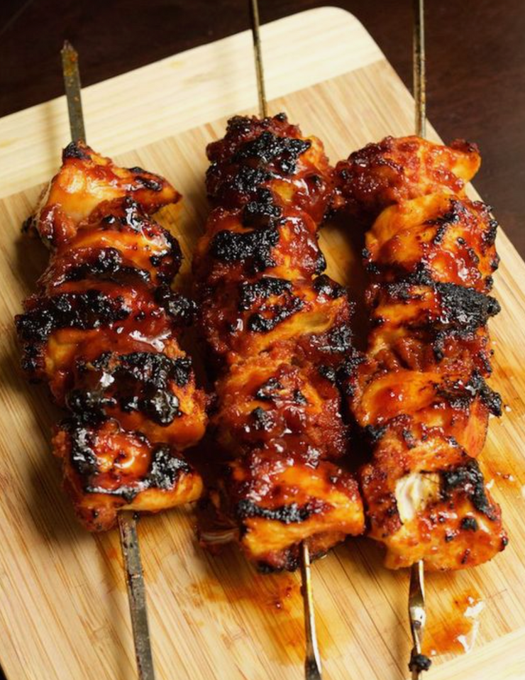 BBQ chicken kebabs: these truly could not be easier. Cut chicken breast into 1-2in chunks and coat generously with sugar-free BBQ sauce. Put on skewers and grill at 375 degrees for 6-7 minutes each side, or until done.